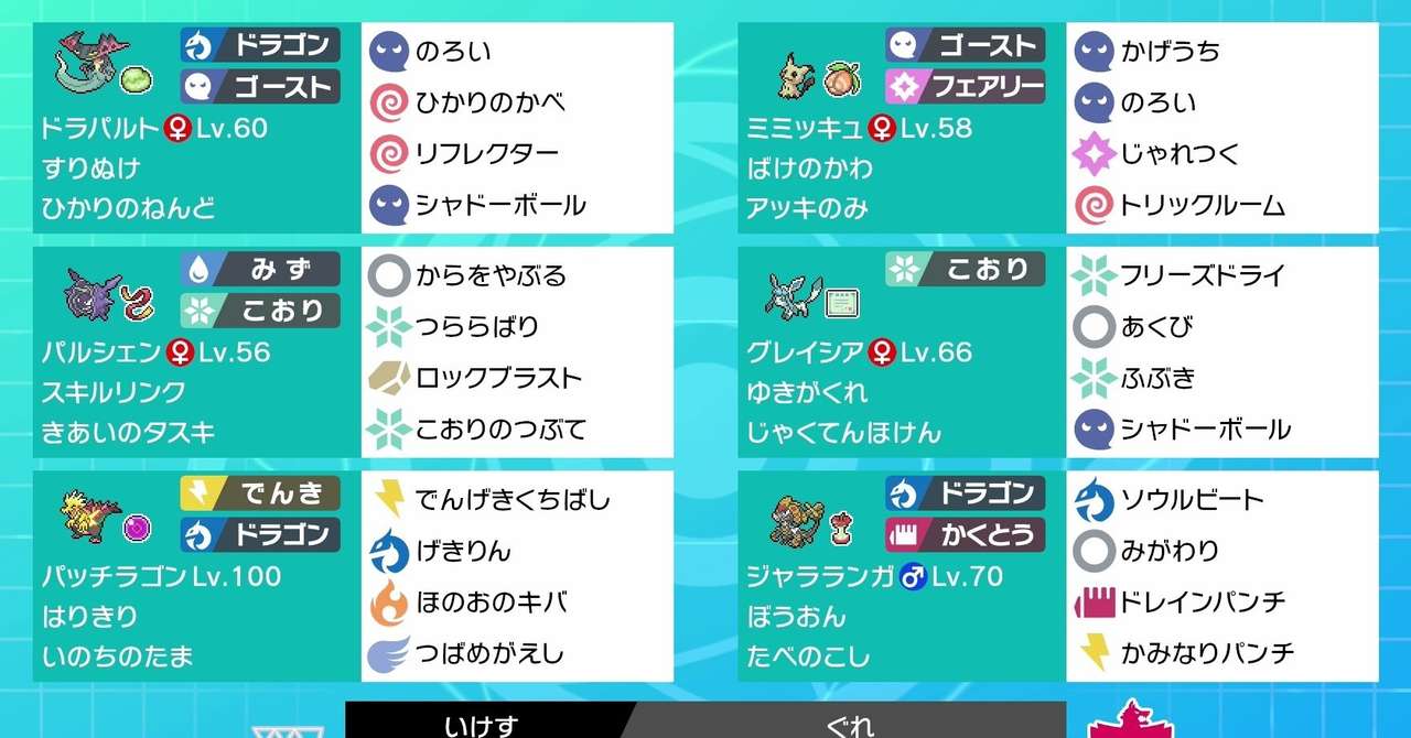 剣盾s4使用構築 グレイシアパルシェン 最終339位 いけす Note